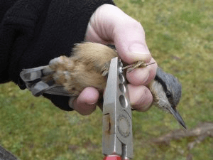 In simple terms, bird ringing involves putting a small metal ring on a bird’s leg. Each ring has a unique number meaning, once a bird has a ring fitted, it is identifiable as an individual and, if recaptured or found, we can learn about the its life – where it goes, how long it lives etc.