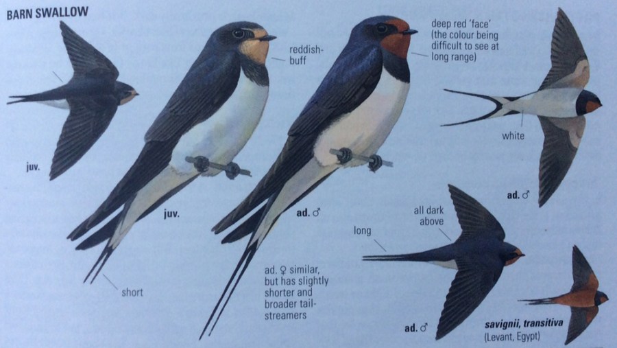 - Swallows can be recognised by their deeply forked tails – known as ‘streamers – although these are not so long in young birds: